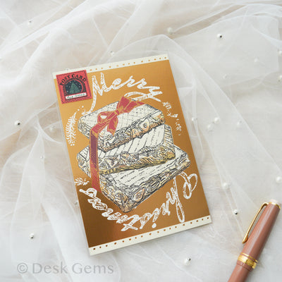 Aya Inoue Christmas Foil Postcard - Christmas Pudding and Mince Pie